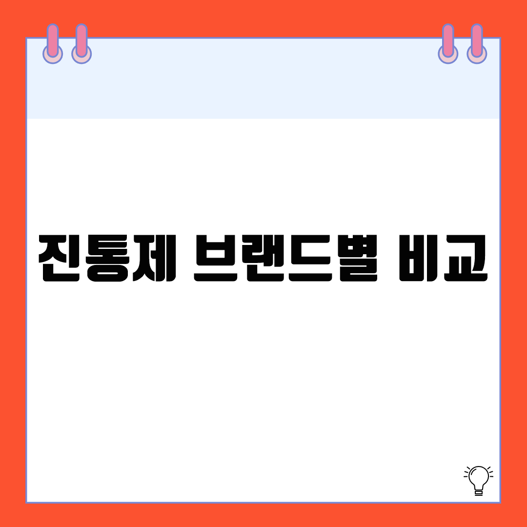 진통제 브랜드별 비교 | 주요 진통제 제품별 성분·효과·특징 정리시중에는 다양한 진통제 브랜드가 존재하며, 각 제품마다 성분과 작용 방식, 복용 목적이 다릅니다. 이 글에서는 대표적인 진통제 브랜드를 비교하여 소비자가 자신의 증상에 맞는 약을 선택하는 데 도움이 될 수 있도록 정보를 정리합니다.1. 주요 진통제 브랜드 비교표브랜드주요 성분작용특징타이레놀아세트아미노펜중추 신경계에서 통증 및 해열 작용위장 부담 적고 감기, 두통에 자주 사용이부펜이부프로펜 (NSAIDs)진통·해열·항염 작용염증성 통증에 효과적, 식후 복용 필수펜잘큐아세트아미노펜 + 카페인 + 항히스타민복합 진통 효과졸음 유발, 감기 초기 증상 완화에 적합부루펜이부프로펜항염·진통·해열어린이용 해열제로도 널리 사용됨게보린아세트아미노펜 + 이소프..